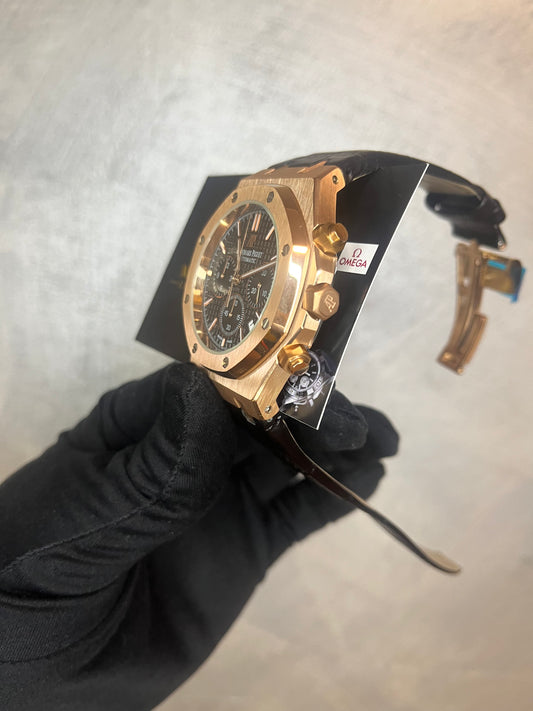 AUDEMARS PIGUET ROYAL OAK CHRONO CASSA ORO CON QUADRANTE NERO ,CINTURINO IN PELLE