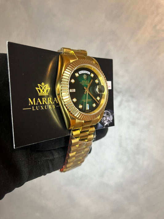 ROLEX DAYDATE PRESIDENT ORO GIALLO QUADRANTE VERDE CIN BRILLANTINI