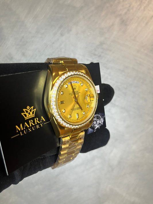 ROLEX DAYDATE ORO GIALLO QUADRANTE E GHIERA CON BRILLANTI