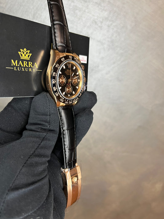 ROLEX DAYTONA CASSA IN ORO,DIAL NERO CON CRONO ORO CINTURINO IN PELLE