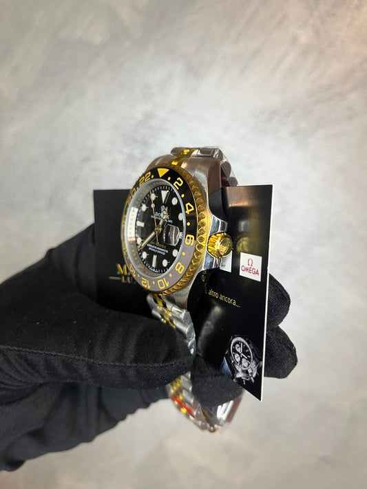 ROLEX GMT MASTER ZOMBIE GHIERA GRIGIA E NERA CON NUMERI IN ORO BRACCIALE JUBILEE ORO E ACCIAIO