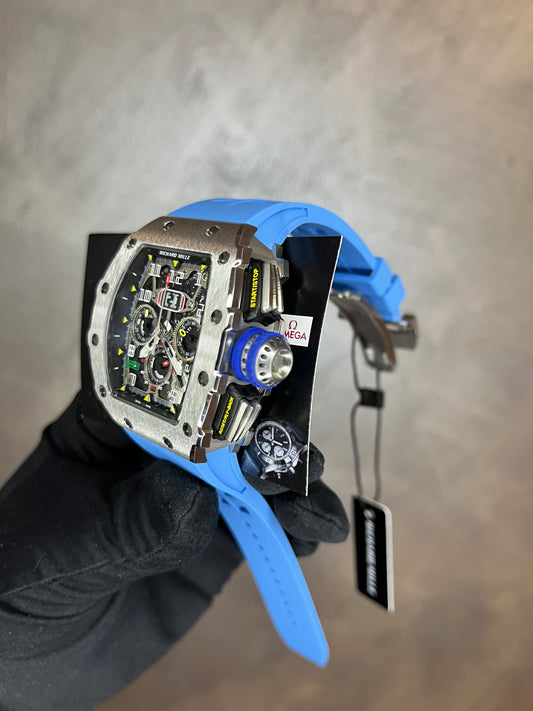 RICHARD MILLE CASSA ACCIAIO CON CINTURINO IN GOMMA AZZURRO