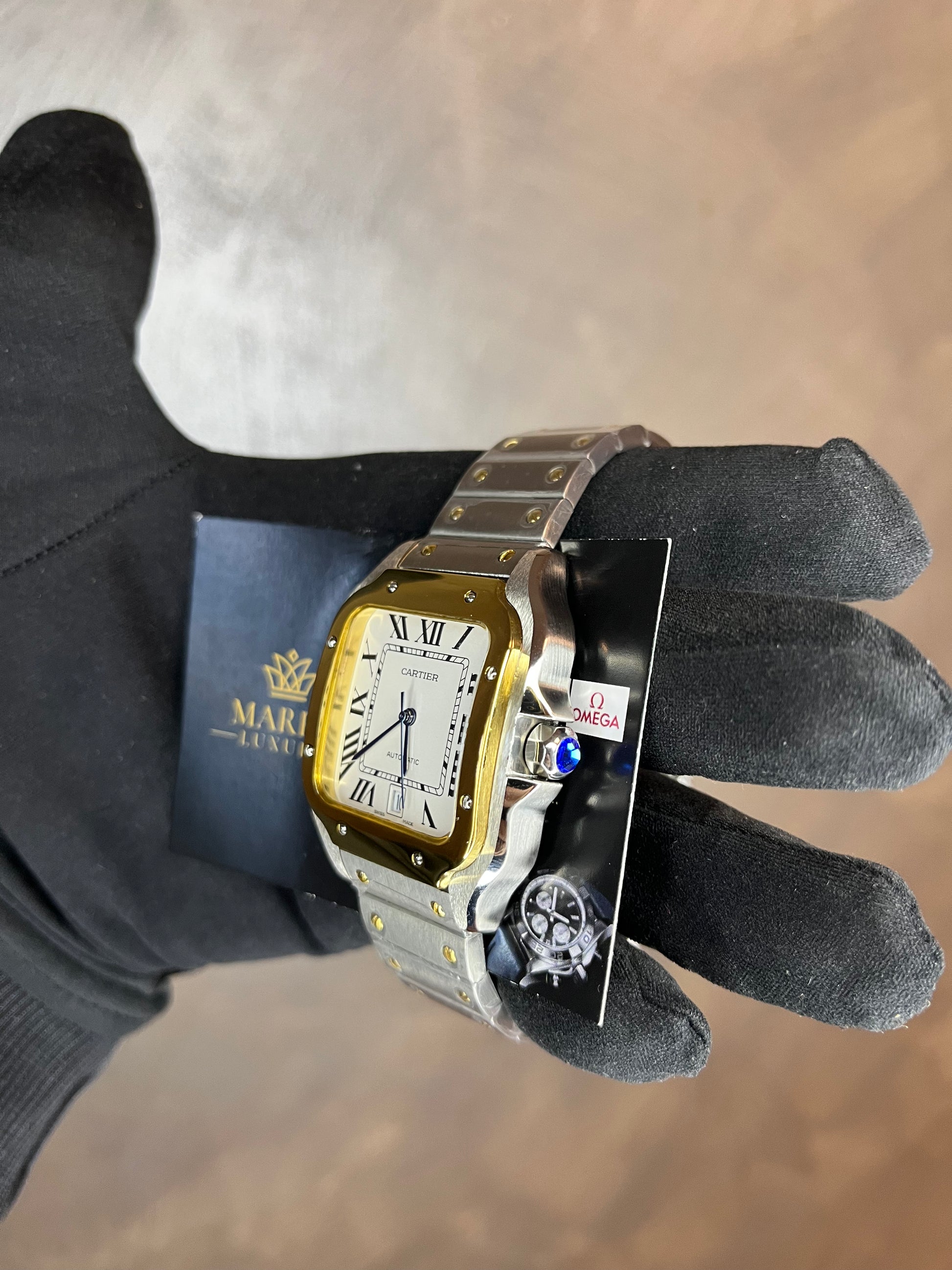 CARTIER SANTOS 40 MM DATA ACCIAIO CON GHIERA ORO GIALLO